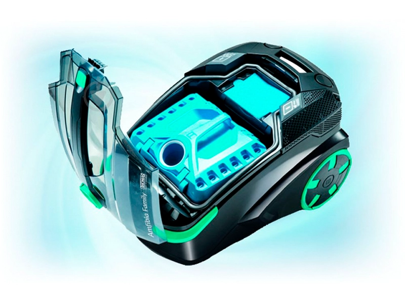 Система WET-JET створює потужну водяну стіну, якою проходить потік повітря. Моторний фільтр захищає двигун пилососа від вологи та пилу. Миючий, довговічний HEPA-фільтр забезпечує високу ступінь фільтрації.