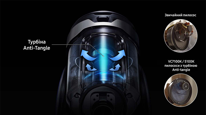 Опис Пилосос турбінний Samsung Anti-Tangle VC05K71F0HB/UK