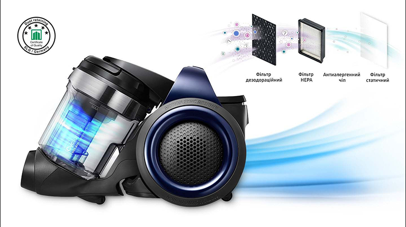 Чи траплялися у вас напади алергії на пил після збирання? Система фільтрації частинок пилу та алергенів знизить до мінімуму проникнення частинок пилу та алергенів у приміщення – сертифікована SLG.