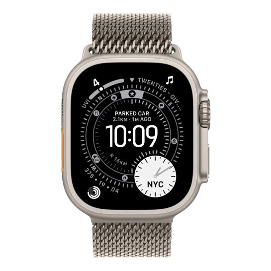 Ремінець Apple Titanium Milanese Loop з титану аерокосмічного класу з плетеною сіткою для Apple Watch Ultra. Перший металевий ремінець, спеціально розроблений для Apple Watch Ultra, надихнутий сталевою сіткою, історично використовуваною дайверами.