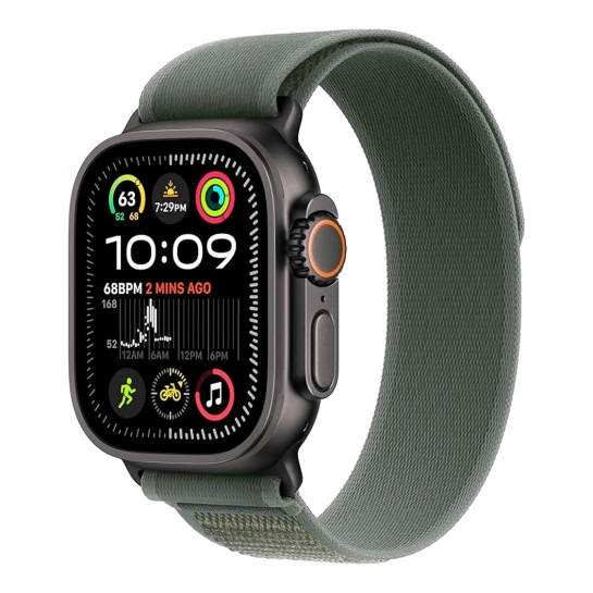 Ремінець Apple Trail Loop для Apple Watch Ultra 2 з корпусом 49 мм з титану з чорним покриттям. Спеціально розроблений для активного способу життя та занять спортом на відкритому повітрі.