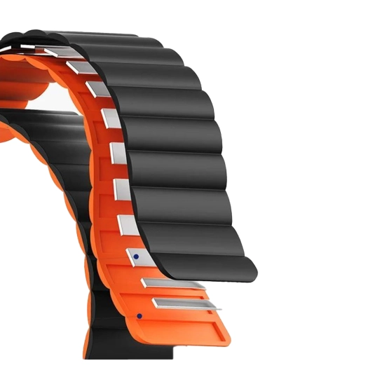 Ремінець виготовлений з преміального силікону медичного класу, який відрізняється винятковою м'якістю, гіпоалергенними властивостями та стійкістю до впливу різних зовнішніх факторів. Матеріал не вбирає запахи, легко очищається від забруднень і зберігає початкову еластичність навіть при тривалому використанні в екстремальних умовах. Спеціальна формула силікону забезпечує оптимальний баланс між гнучкістю та міцністю, запобігаючи появі тріщин, деформацій або втрати кольору під впливом ультрафіолетових променів. Стійкість до температурних перепадів та хімічних впливів гарантує довгий термін служби ремінця в будь-яких кліматичних умовах.