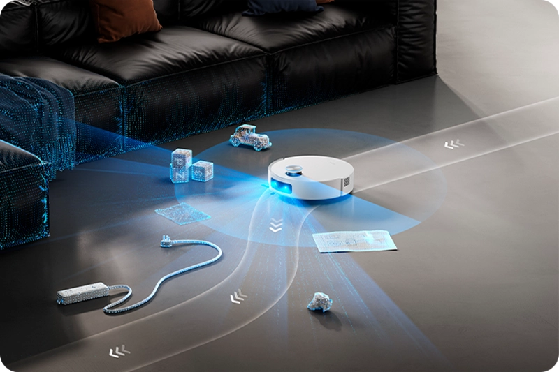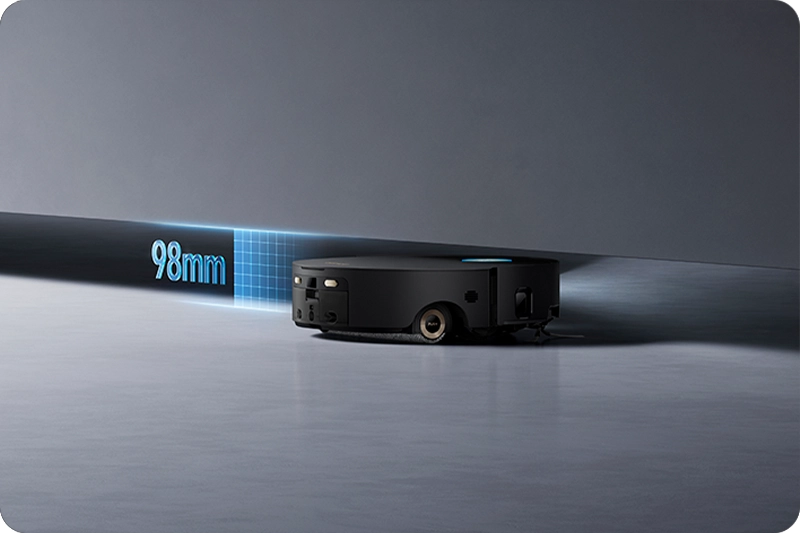 Роботи схильні застрягати під диваном або не проходити взагалі - щоб це завадило повністю очистити будинок, у цій моделі зробили вертикально-рухливий модуль. Робот отримав рухливу систему DToF з вертикальним ходом, що дозволяє йому буквально зменшуватись по висоті. Він проходить під диванами, ліжками та тумбами – саме там, де найчастіше накопичується пил. Датчик DToF додатково сканує простір на 360 °, прогнозуючи геометрію меблів і вибираючи найшвидший маршрут. Тепер під меблями так само чисто, як і на відкритій площі. Налаштування не потрібні – робот сам аналізує, чи він може безпечно пройти всередину.
