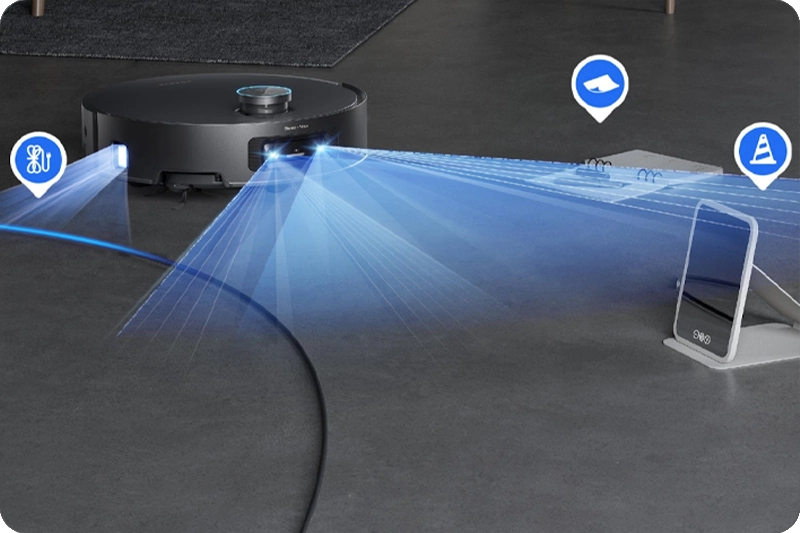 Завдяки технології VersaLift - робот-пилосос легко дістає під низькі дивани, ліжка та інші меблі, де зазвичай накопичується пил. Інтелектуальний датчик DToF автоматично змінює своє положення - піднімається або опускається в залежності від висоти простору, дозволяючи пристрою вільно маневрувати навіть там, куди звичайним інструментам важко дістатися. Це робить прибирання ретельнішим і дає можливість підтримувати чистоту в зонах, які зазвичай залишаються без уваги. Такий підхід допомагає забезпечити рівномірне очищення всього будинку без додаткових зусиль з вашого боку.