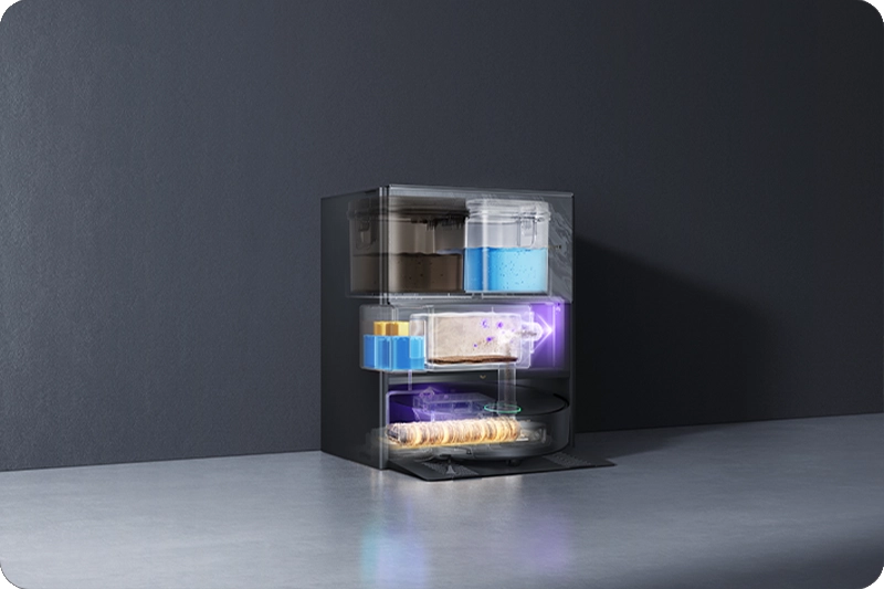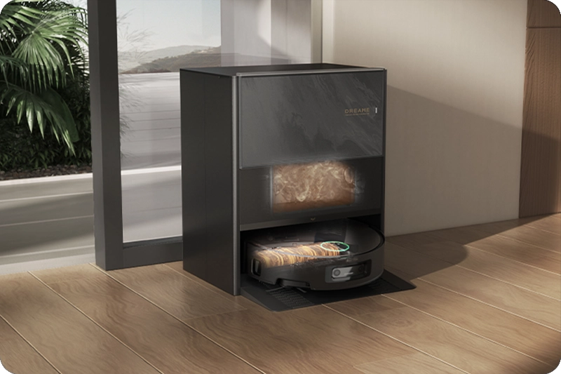 Після завершення збирання робот-пилосос Dreame автоматично повертається на базу, де швабра промивається гарячою водою температурою 100°C. Така система не тільки ретельно очищає швабру від бруду, але й ефективно знищує шкідливі мікроби та запобігає появі неприємних запахів. Завдяки цьому процес збирання стає не тільки більш гігієнічним, але й безпечним для всіх членів сім'ї, забезпечуючи чистоту та свіжість статі без додаткових зусиль.