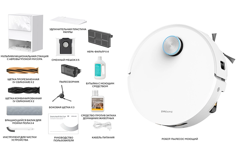 Робот-пилосос Dreame Aqua 10 Ultra Track Complete поставляється з усіма необхідними аксесуарами для миття та прибирання вашого будинку. Кожен елемент комплекту продуманий для того, щоб процес збирання був максимально зручним та ефективним, від щіток до спеціальних миючих засобів.