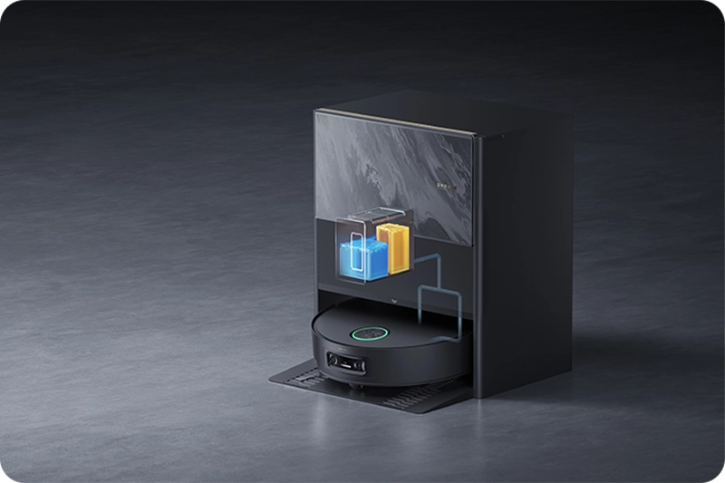 Робот-пилосос оснащений потужними та місткими резервуарами, які дозволяють довше прибирати без додаткових перерв. Акумулятор Li-ion ємністю 6400 мА/год забезпечує тривалу автономну роботу, а об'єм бака для води 200 мл та пилозбірника 220 мл дозволяють ефективно збирати сміття та підтримувати чистоту підлоги. База для автоматичного очищення також має великі резервуари: 4000 мл для чистої води, 3500 мл для відпрацьованої води та 3200 мл для пакету для сміття, що робить процес обслуговування максимально простим і зручним. Ці параметри гарантують тривале прибирання навіть у великих приміщеннях без частого поповнення рідин або випорожнення відсіку для сміття.
