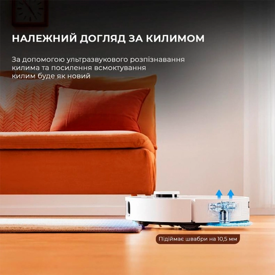 Позбавтеся бруду, кіптяви, вовни домашніх тварин та інших забруднень за допомогою DreameBot L10s Pro Ultra! І все це завдяки індивідуальному чищенню килимів. Цей робот використовує до 4 різних режимів, щоб якнайкраще адаптуватися до ваших потреб. Пристрій може піднімати швабру на 10,5 мм, що робить його ідеальним для різних типів килимів. Бажаєте, щоб обладнання уникало їх під час роботи? Виберіть Carpet Avoidance. Режим Carpet Boost збільшить потужність всмоктування, щоб пропилососити килим лише один раз, а в режимі Intensive Carpet Cleaning – два рази на зниженій швидкості. Вибір за вами!