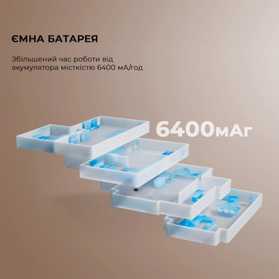 Dreame працює від батареї на 6400 мАг, а одного заряду вистачає до 260 хвилин. Середній час автономності в комбінованому режимі – 194 хвилини. Завдяки площі покриття 137 кв. метрів робот легко прибирає одноповерховий будинок. Він сам повертається на док-станцію, коли потребує підзарядки, очищення насадок або дозаправки води, після чого продовжує очищення.