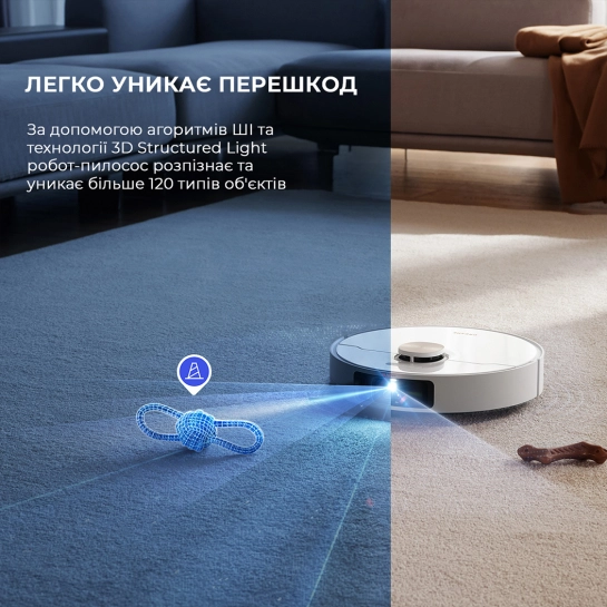 Оснащений RGB-камерою зі штучним інтелектом та 3D-структурованим освітленням, X40 Ultra уникає понад 80 типів перешкод. Він розпізнає взуття, кабелі, іграшки та меблі, маневрено уникаючи зіткнень. Орієнтуючись у складному середовищі, робот зберігає делікатні предмети неушкодженими.