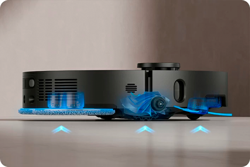 Чи достатньо зволоження для видалення стійкої плями від кави? X40 Ultra вирішить самостійно. Завдяки новій системі OmniDirt пилосос адаптує силу зволоження для більшої чистоти. Інтелектуальна RGB-камера та чутливий 5-канальний датчик розпізнають типи бруду, визначаючи складні та липкі плями. А підйом бічної щітки не дає бруду поширюватися між сухими та вологими зонами, що особливо важливо при збиранні килимів.