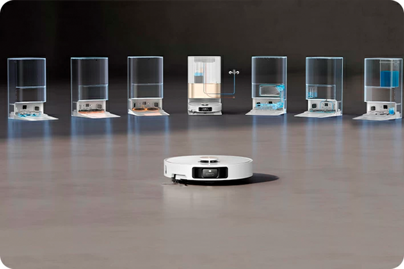 Станція для самоочищення пилососу має знімні резервуари для чистої та брудної води, розраховані на 4,5 та 4 літри відповідно. Сам аксесуар має вбудований бак для чистої води на 80 мл. У станції розташований відсік для дозованого додавання миючого засобу в чисту воду. Мікрофіброві насадки для миття підлоги автоматично промиваються гарячою водою температурою до 70 градусів. Коли всі частинки бруду усунуті, робот сушить швабри на станції. Жодних неприємних запахів та бактерій.