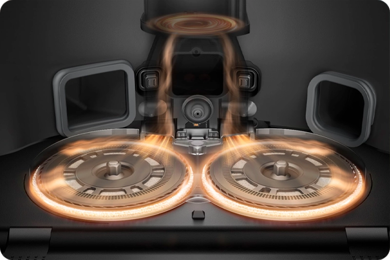 Двигун TurboForce шостого покоління обертається зі швидкістю 90 000 об/хв, забезпечуючи технологію Vormax з потужністю всмоктування до 20 000 Па. Це дозволяє ефективно прибирати сміття навіть із глибоких щілин.