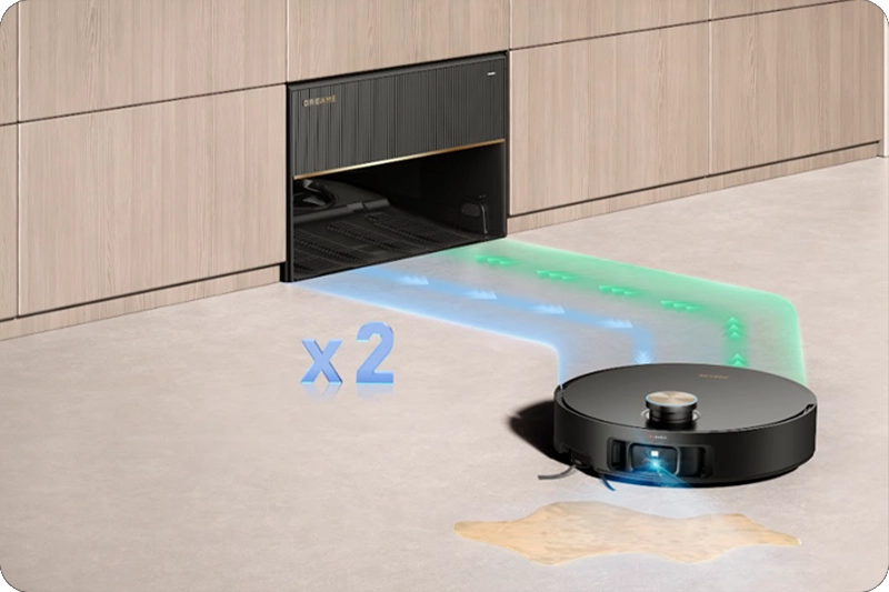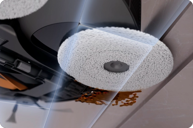 Піднімайте миючі насадки для сухого прибирання або обходьте килими з низьким, середнім або високим ворсом. Режим глибокого очищення дозволяє досягти максимальної чистоти навіть у волокнах килимів, адже Dreame посилює потужність для ретельного очищення. Крім того, є ще один сценарій – коли робот скидає миючі насадки, перш ніж заїхати на килим та перейти до сухого прибирання.