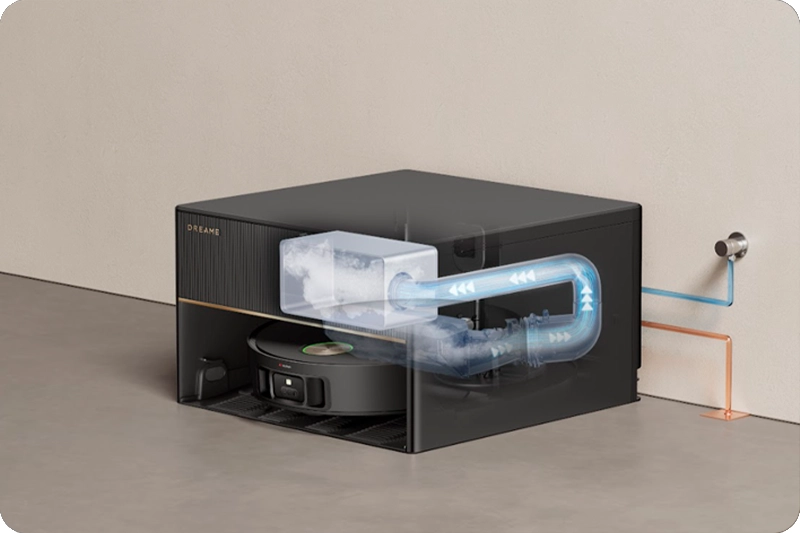 Інтелектуальна система очищення насадок використовує воду температурою до 80 °C, ефективно видаляючи жир та засохлі забруднення. Антинакипний захист запобігає утворенню накипу, продовжуючи термін служби пристрою. Станцію Dreame X50 Master можна підключити до системи водопостачання, щоб автоматично поповнювати резервуар чистої води та зливати використану. Саме тому вам взагалі не доведеться обслуговувати станцію вручну: прибирання повністю автономне.