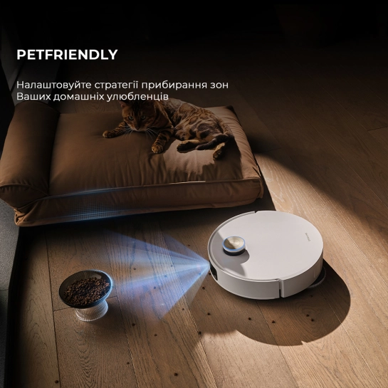 Завдяки 3D-скануванню за допомогою структурованого світла та штучного інтелекту пилосос Dreame з приголомшливою точністю визначає до 200 типів об'єктів, включаючи відходи від тварин. Вбудовані світлодіодні індикатори пилососу X50 Ultra дозволяють завчасно виявляти перешкоди.