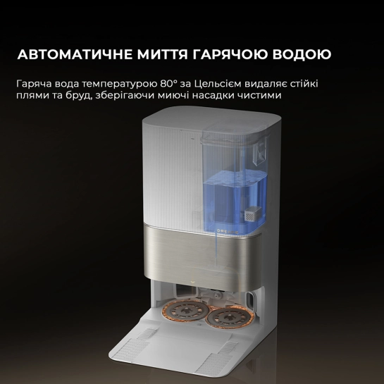 Отримайте чисту підлогу завдяки системі автоматичного очищення насадок. Гаряча вода температурою 80 градусів за Цельсієм видаляє стійкі плями та жир, зберігаючи миючі насадки свіжими та готовими до наступного збирання. Вбудований інгібітор накипу запобігає її накопиченню, забезпечуючи тривалу роботу та захист пилососа.