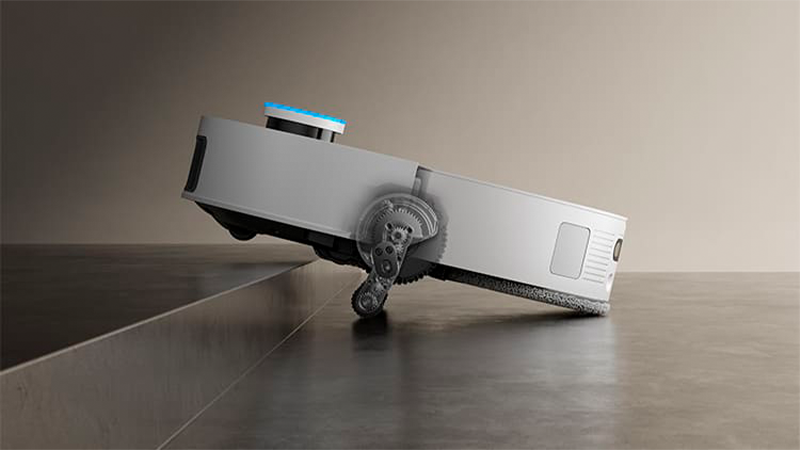 Система ProLeap допомагає плавно долати перешкоди висотою до 6 см завдяки системі поглинаючої удари для забезпечення тихого прибирання. Вона спритно піднімає роботизовані висувні ніжки, що дозволяє легко перетинати дверні напрямні, двошарові пороги та прибирати навколо U-подібних меблів без пошкоджень.