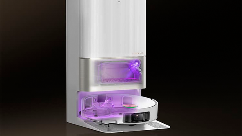 Після очищення та сушіння гарячим повітрям мийна насадка може похвалитися видаленням 99.9% бактерій, що забезпечує ідеальну чистоту. Ультрафіолетове світло в отворі мішка для пилу ще більше покращує процес автоматичного спорожнення.