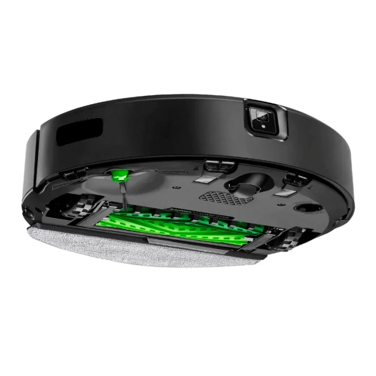 iRobot Combo j5 отримав прибиральний блок із двома центральними гумовими турбощітками. Завдяки ребристій поверхні, щітки тісно контактують з поверхнею, що очищається і якісно видаляють пил, сміття не тільки на гладкій підлозі, але і на ворсистих килимах.