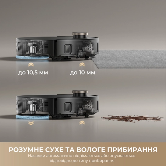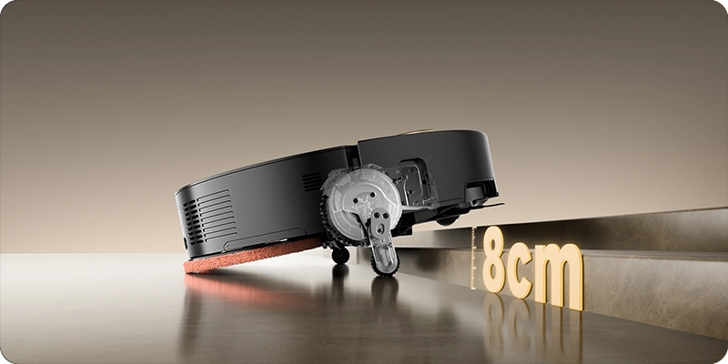 Проблема кутів у круглих роботів завжди була актуальною, доки не з'явилася система MaxiReach. Вона дозволяє бічній щітці висуватися за межі корпусу, проникаючи у вузькі простори та вимітаючи пил безпосередньо з-під плінтусів. Одночасно з цим навігація FlexScope із висувним DToF-датчиком відповідає за роботу під низькими меблями. Датчик бачить «мертві зони» під диванами та шафами, де зазвичай накопичується найбільше пилу. Робот чітко розрізняє об'єкти на своєму шляху: він не штовхатиме тапочки чи миску собаки, а акуратно обійде їх, максимально наблизившись до краю, щоб очистити зону ретельніше.