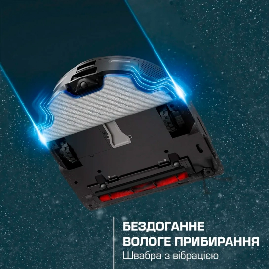 Вібраційна насадка ефективно відтирає плями. Забудьте про ручне миття підлоги після робота-пилососа.