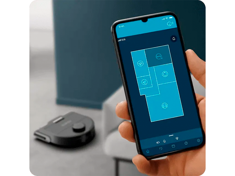 Робот-пилосос охоплює до 120 м² за один прохід і повертається до док-станції для заряджання перед автоматичним відновленням прибирання.
