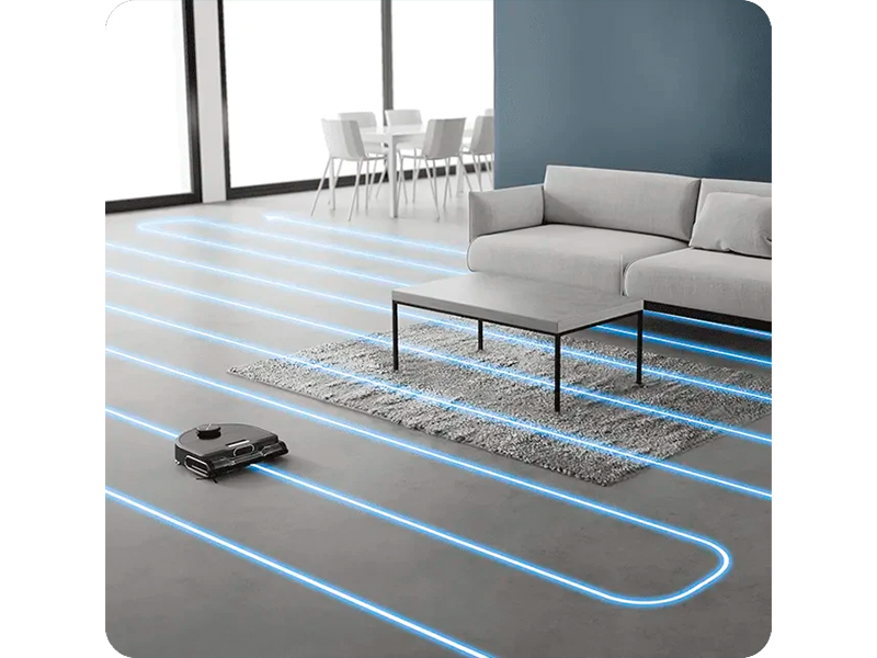 Робот-пилосос охоплює до 120 м² за один прохід і повертається до док-станції для заряджання перед автоматичним відновленням прибирання.