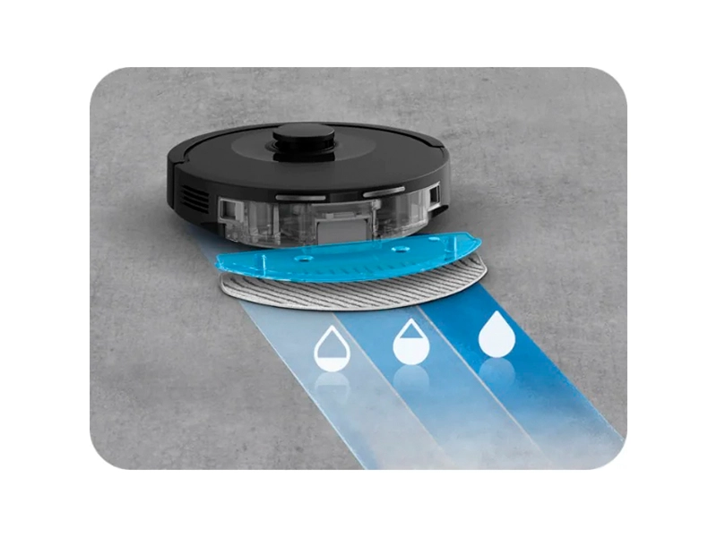 Робот-пилосос забезпечує точність та ефективність прибирання завдяки системі Smart Aqua Power із 3 рівнями подачі води, які можна встановити залежно від типу підлоги.