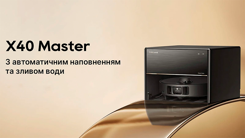 Переваги Dreame Bot X40 Master: Навігація LDS (Лідар); Система повного ІІ з активною камерою; Система розпізнавання брудних ділянок; Висувна бічна щітка та висувний миючий диск; Датчик килима (розпізнавання типу поверхні); Потужність двигуна (12000 Па); Контейнер для збору сміття (300 мл) + HEPA фільтр (Мийний); Управління зі смартфона (Wi-Fi); Батарея 6400 mAh; База повного самообслуговування; Комплект для підключення до водопроводу; Бак 80 мл + Регулювання подачі води (електронна через програму).