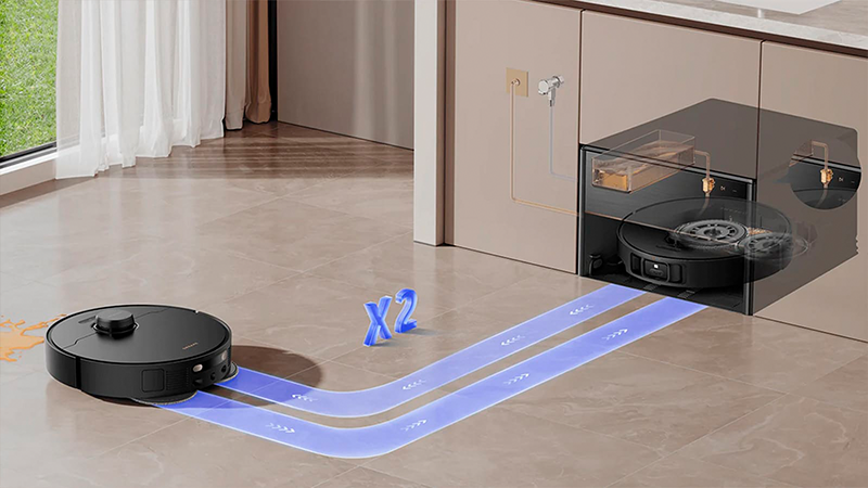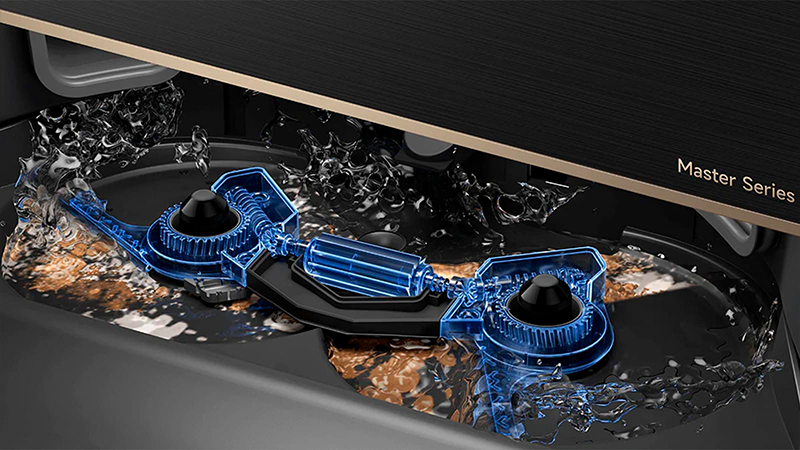 Конструкція піддону, де робот промиває свої мопи має систему самоочищення, яка усуває запахи та залишки бруду після промивання брудних мопів робота. Вона видаляє залишки бруду на 61,2% ефективніше порівняно з попередніми моделями.