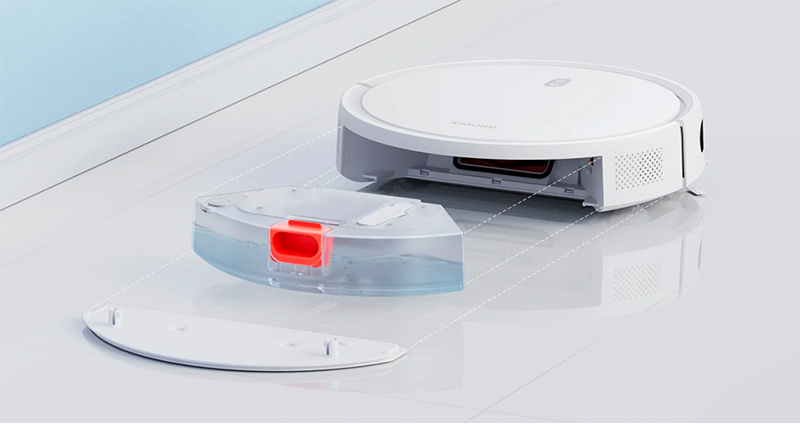 Новий бак для води Xiaomi E10 не тільки набагато ємніший (200 мл), він ще й дуже легко знімається. Завдяки чому не потрібно перевертати робота, щоб змінити ганчірку. Регулювання подачі води відбувається через програму та доступна в 3-х рівнях.