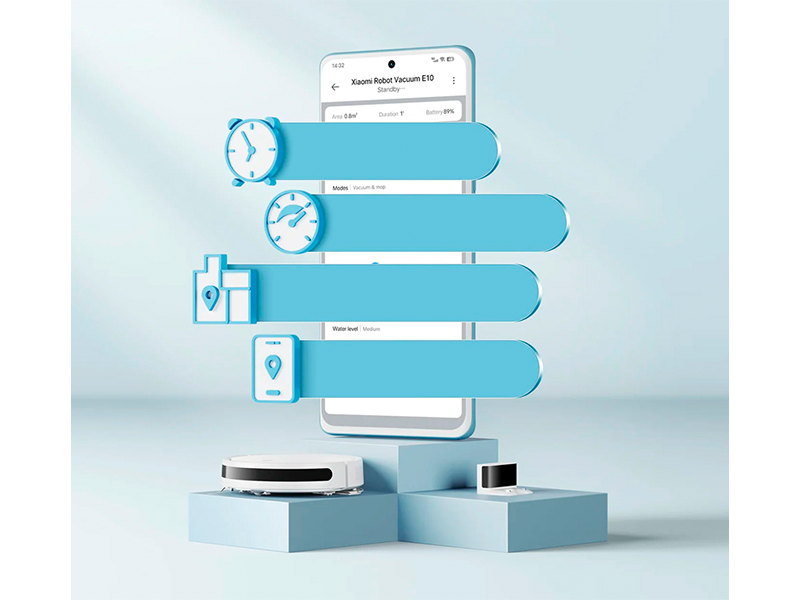 Програма Mi-Home дозволяє виконати більш тонкі налаштування робота прибирача, включаючи графік прибирання. Ви зможете спостерігати за ходом збирання на екрані смартфона, запускати або зупиняти збирання, відправляючи робота на зарядну станцію.