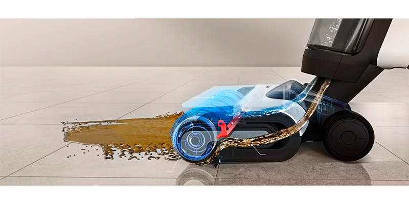 Однією з ключових особливостей моделі є функція Flashdry, яка забезпечує глибоке очищення та сушіння всіх деталей пилососу. Система ретельно розчиняє плями, очищає трубки та щітковий валик, а потім сушить усі елементи при досить високій температурній дії, ефективно видаляючи залишки вологи. Щіточний валик обертається в обидва боки, що дозволяє йому залишатися м'яким, сухим та готовим до наступного використання без неприємних запахів.