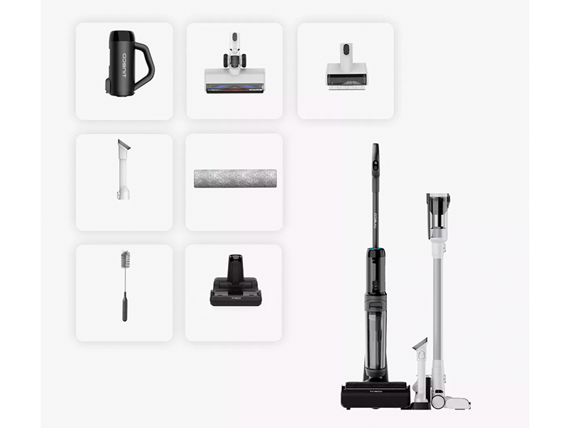 Комплектація Tineco Floor One Switch S6 Pet розроблена для максимальної універсальності збирання. У комплекті ви знайдете щітку ZeroTangle, яка ефективно збирає волосся та шерсть без намотування на насадку, а також спеціальну міні-щітку для делікатних поверхонь. Щілинна насадка забезпечує ретельне очищення важкодоступних місць, а змінний щітковий валик дозволяє підтримувати високу ефективність роботи. Додаткові аксесуари — зручна щітка для очищення пилососа, яка спрощує догляд за пристроєм, та док-станція для заряджання та сушіння, щоб ваш пилосос завжди був готовий до роботи. Подаруйте собі бездоганний результат та зручність з Tineco Floor One Switch S6 Pet!
