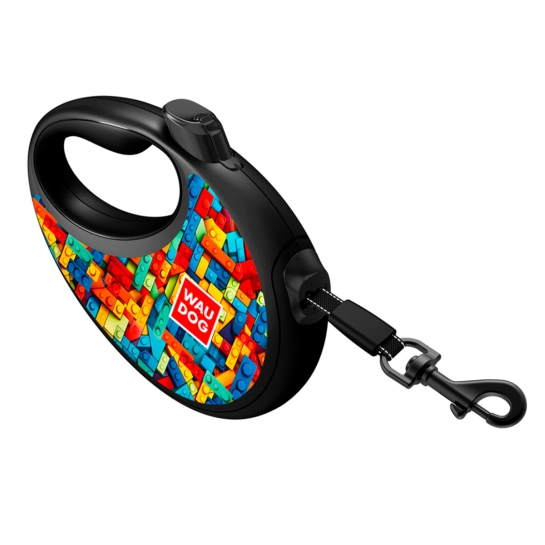Опис Рулетка-повідець для собак WAUDOG R-leash з контейнером для пакетів, малюнок Блоки, світловідбивна стрічка, L, до 40 кг, 5 м (257-4056)
