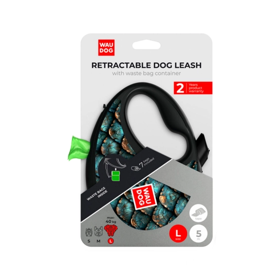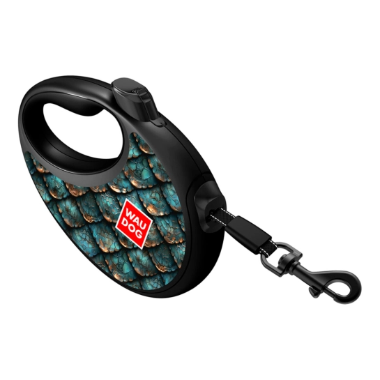 Рулетка-повідець для собак WAUDOG R-leash з контейнером для пакетів, малюнок Луска, світловідбивна стрічка, L, до 40 кг, 5 м (257-0179)