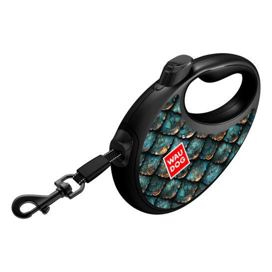 Опис Рулетка-повідець для собак WAUDOG R-leash з контейнером для пакетів, малюнок Луска, світловідбивна стрічка, L, до 40 кг, 5 м (257-0179)