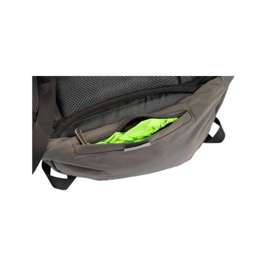 Модель виконана з високоміцного та стійкого до стирання матеріалу, завдяки чому рюкзак прослужить не один рік. Рюкзак має містке основне відділення з відсіком для ноутбука, планшета або книг і додаткове відділення на середину висоти, глибоку фронтальну горизонтальну кишеню, та еластичні бічні кишені для пляшки або термоса. Також рюкзак обладнаний маленькою кишенею внизу рюкзака, в якому захований водонепроникний чохол.