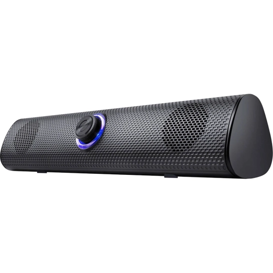 Габарити моделі становлять близько 320 х 70 х 79 мм, що робить її зручною для розміщення під екраном або на столі перед монітором. Завдяки цьому саундбар не перевантажує робочий простір і візуально вписується в мінімалістичні рішення.