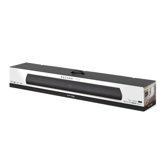 Harman Kardon Enchant 1100 відрізняється не лише фантастичним звуком. Вишуканий дизайн саундбару приносить радість у вашу оселю, гармонійно поєднуючись з будь-яким інтер'єром і не перевантажуючи простір. Увага до деталей помітна у всьому – від елегантної мінімалістичної форми до стильної панелі керування, якою надзвичайно зручно користуватися.