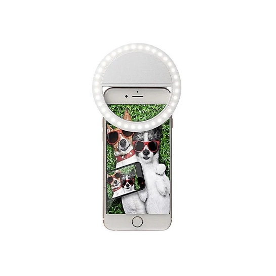 Кільцева конструкція освітлювача, яка кріпитися на сам смартфон, дозволяє рівномірно освітити обличчя і створити незвичайне відображення в зіницях очей, це додасть фото селфі незвичайну творчу родзинку.
