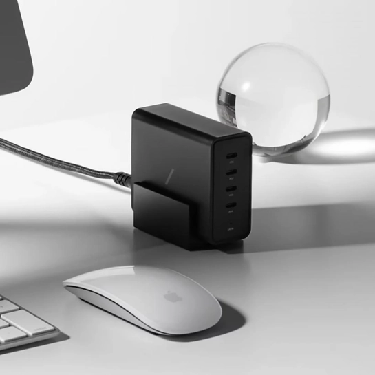 Використовуючи технологію GaN потужністю 140 Вт, можна швидко заряджати до 4 пристроїв одночасно за допомогою 4 портів USB-C. Завдяки вищій потужності напруги GaN сильніший електричний струм проходить через зарядний пристрій, що дозволяє швидше заряджати ваш пристрій. У той же час, завдяки вищій тепловій стабільності GaN, менше електроенергії втрачається на нагрівання, а натомість більш ефективно перетворюється на енергію, тому зарядним пристроям на основі GaN не потрібно стільки енергії, скільки кремнієвим зарядним пристроям, щоб забезпечити таку ж потужність. Загалом, він швидший і потужніший.