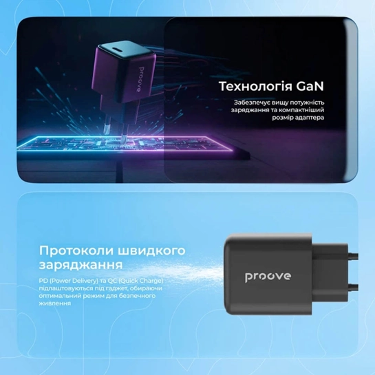 Proove Pocket GaN оснащений вбудованим захистом від короткого замикання, перегріву і перенапруг. Це гарантує стабільну роботу пристрою і безпеку підключеної техніки при щоденній експлуатації.