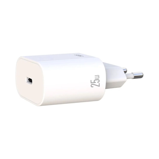 Адаптер оснащений сучасним роз'ємом Type-C, зручно розташованим у його торці. Максимальна потужність на виході роз'єму становить 25Вт, сила струму – 3А. Вбудована мікросхема з інтелектуальним ядром забезпечує стабільну роботу пристрою без перегріву і автоматично визначає необхідні параметри зарядки для кожного гаджета, що підключається. Аксесуар підтримує такі протоколи швидкого заряджання: Apple Mode2.4, QC 2.0/3.0/4.0+, PD 2.0/3.0, PPS, DCP та Huawei-SCP.