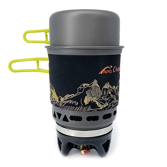 Газовий балон в наборі не додається. Є хороший захист від вітру, полум'я виходить Рівне і сильне. При виготовленні комплекту використовували анодований алюміній, це легкий, але при цьому, міцний, матеріал. Великий казанок також має спеціальну теплоізолюючу тканину, щоб забезпечити безпечну експлуатацію. Силіконова ручка перешкоджає отриманню опіків при використанні маленького Казанка. У пальнику передбачили вбудований п'єзопідпал, щоб робота була простою і зручною.