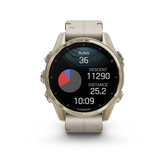 Опис Смарт-годинник Garmin Fenix 8 AMOLED 43mm Sapphire Soft Gold with Limestone Leather Band