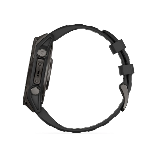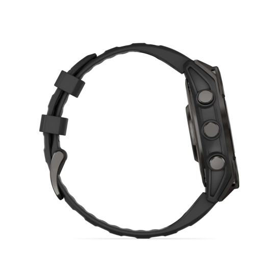 Опис Смарт-годинник Garmin Fenix 8 AMOLED 47mm Sapphire Carbon Grey DLC with Black/Pebble Grey Silicone Band (Open Box)
