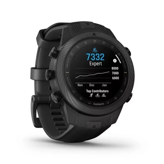Цей сучасний годинник-інструмент, створений для найсильніших суперників, оснащений приголомшливим сенсорним дисплеєм AMOLED з традиційними кнопками управління. Корпус діаметром 46 мм та безель виготовлені з матеріалу Fused Carbon Fiber, що забезпечує наднадійну конструкцію.