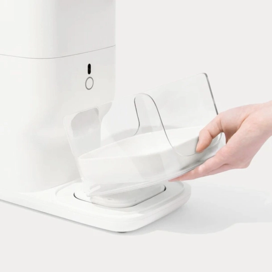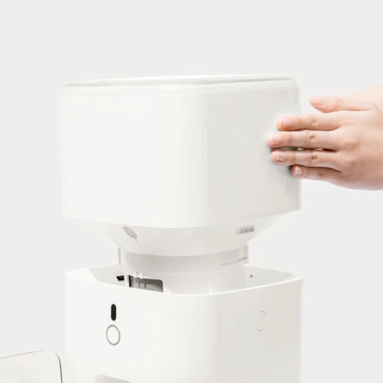 Годівниця автоматично контролює та поповнює корм при його нестачі, забезпечуючи постійне харчування вихованців. Пристрій надає детальні дані про годування та сповіщення через мобільний додаток для дистанційного управління. Об'єм резервуара становить 4 літри, що дозволяє вміщати до 2 кг сухого корму одночасно — достатньо для годування дорослої кішки протягом 20 днів.